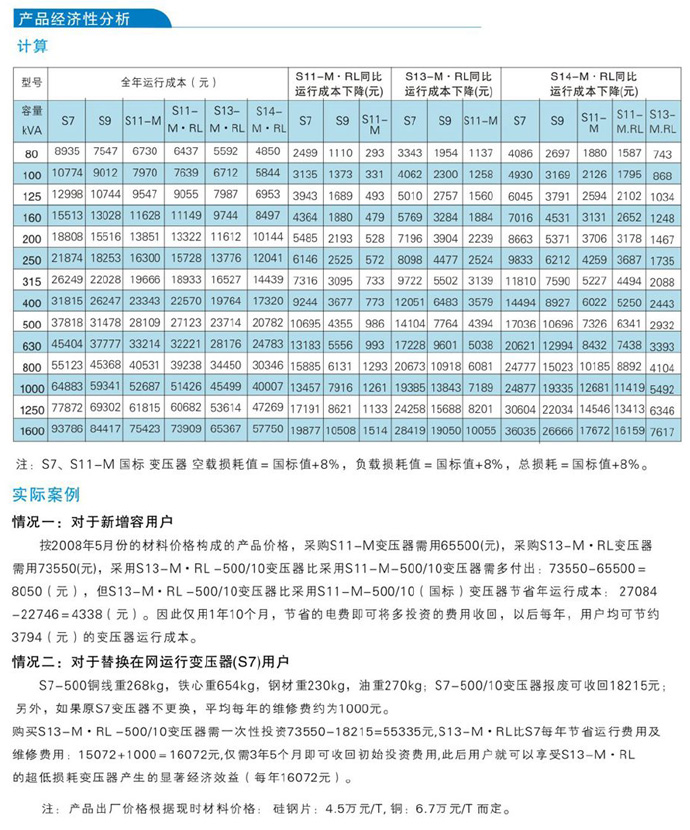 節電節能:較現行“GB/T 6451—2008油浸式電力變壓器技術參數和要求”空載損耗平均降低50%,空載電流平均降低70%;